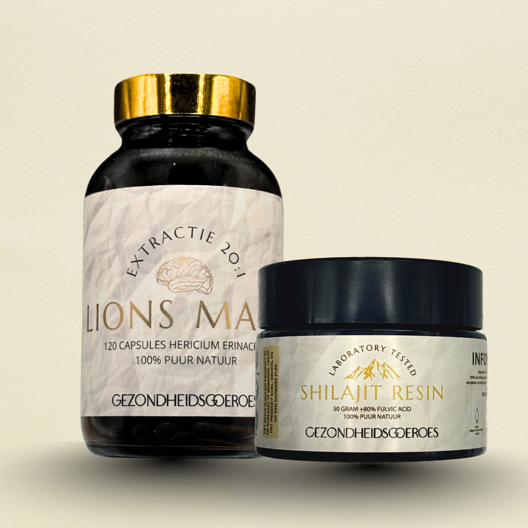 Lions Mane & Shilajit. Onze hersenen hebben veel te verdragen. En dat is ook goed terug te zien in de moderne maatschappij. Concentratie, focus, geheugen, en steeds meer hersenproblemen.