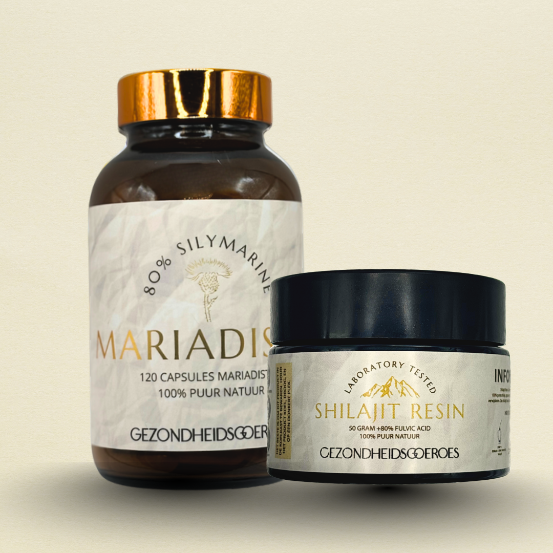 Shilajit & Mariadistel. Pesticiden op voeding, stoffen in het water, en lucht. We krijgen vanuit alle kanten gifstoffen ons lichaam binnen. Deze gifstoffen zijn op lange termijn zeer schadelijk voor onze gezondheid. Met deze krachtige combinatie van Mariadistel en Shilajit geef je een ware detox aan jouw lichaam.