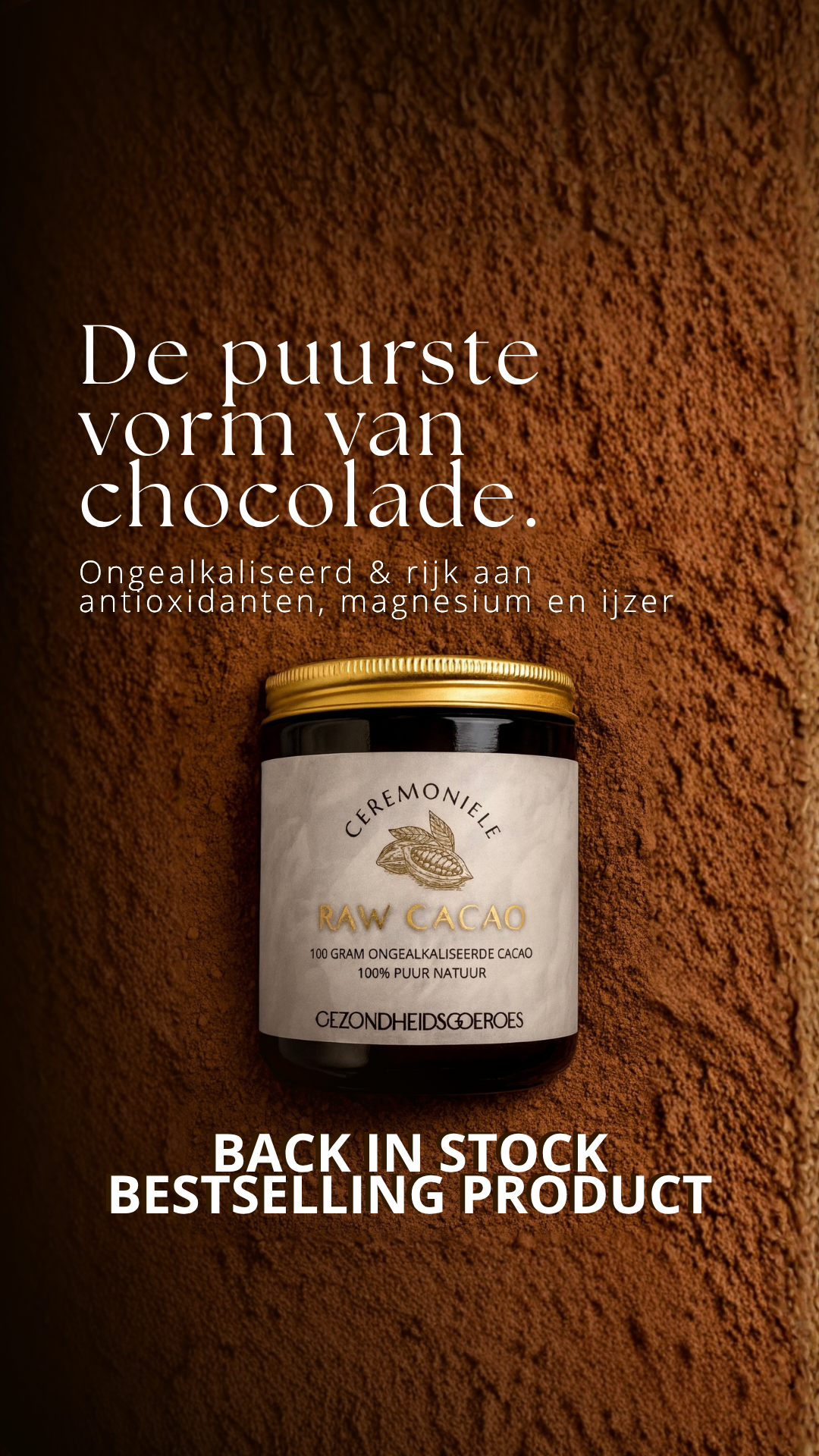 De puurste vorm van chocolade: ongealkaliseerde cacao. Maar dan ongekend gezond, enorm rijk aan magnesium en met 1 kopje per dag al 80% van je dagelijkse antioxidanten. Waarom synthetische magnesium supplementen consumeren als je de kracht uit chocolade kunt halen ?