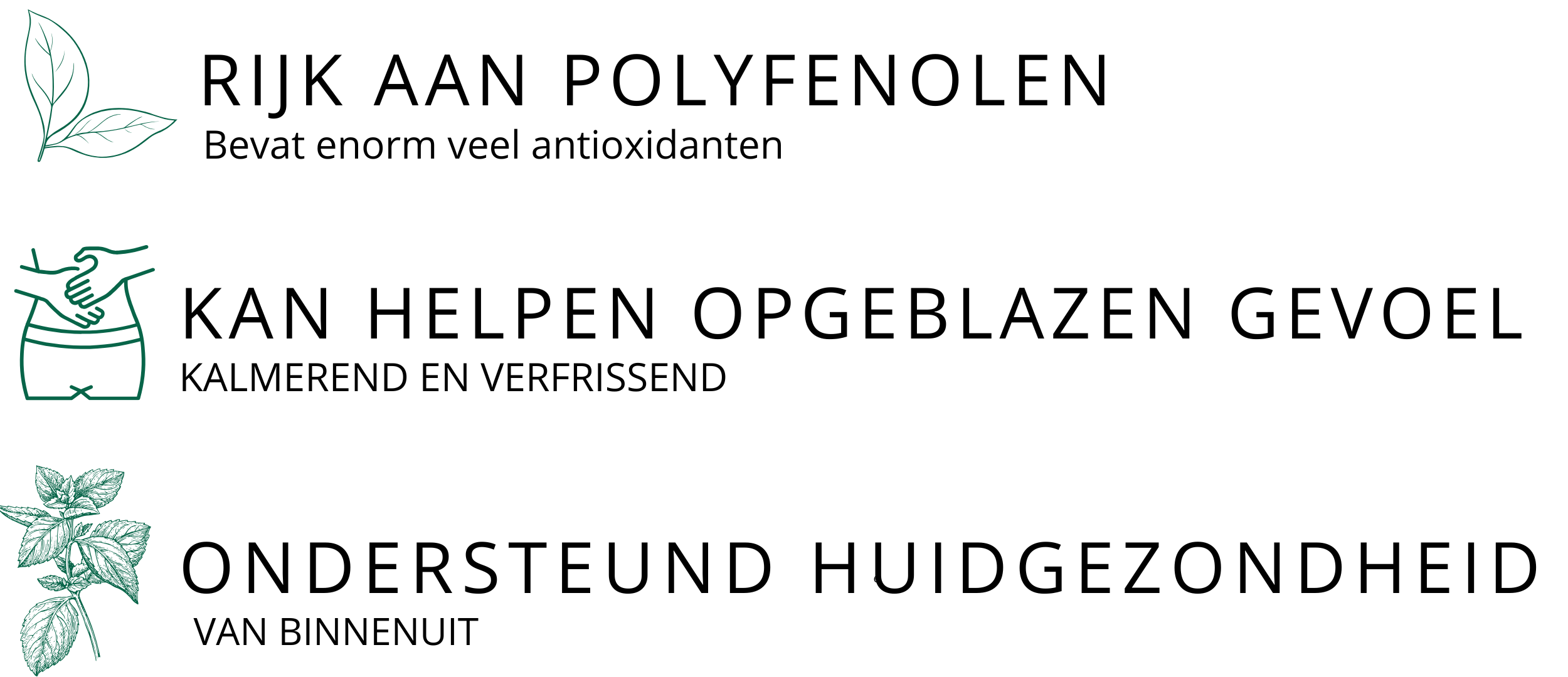 Er wordt steeds meer onderzoek gedaan naar de effecten van kruizemunt op de huid, en het blijkt dat deze bijzondere muntsoort boordevol antioxidanten zit. Kruizemunt, ook wel spearmint genoemd, is een verfrissende thee met een milde, natuurlijke zoetheid, die zachter is dan andere muntsoorten zoals pepermunt. Het helpt om indigestie te verlichten en een opgeblazen gevoel tegen te gaan, waardoor het een ideale keuze is voor iedereen die op zoek is naar comfort en balans. Matcha daarentegen is een ware superfood en wordt beschouwd als de meest pure vorm van groene thee. Deze Japanse delicatesse is anders dan gewone thee, waarbij de bladeren worden geweekt in heet water. Matcha is fijngemalen poeder van de meest kwalitatieve theebladeren, waardoor je de volledige blaadjes consumeert en profiteert van een maximale concentratie antioxidanten. Wat matcha zo uniek maakt, is het proces voorafgaand aan de oogst. Vier weken voordat de bladeren worden geplukt, worden de theestruiken bedekt met schaduwdoeken. Hierdoor maken de planten meer chlorofyl aan, wat zorgt voor de levendige groene kleur en een zachte, zoete smaak. De verhoogde concentratie van L-Theanine, een aminozuur dat bekend staat om zijn rustgevende werking, maakt matcha niet alleen gezond maar ook kalmerend. Na de oogst worden de bladeren gestoomd, gedroogd en vermalen tot een zijdezacht poeder. Hoe feller groen de matcha, hoe hoger de kwaliteit. Ceremoniële matcha is dé standaard voor liefhebbers die alleen het beste willen: een matcha met een natuurlijke zoete smaak en een prachtig felgroene kleur. Zuurzak bladeren zijn enorm krachtig door zijn hoge waarde aan acetogeninen. Dit is een stof verbinding die zeer ondersteunend werkt voor het immuunsysteem. De zuurzakbladeren worden met de hand geplukt uit Vietnam door een klein lokaal familiebedrijfje.